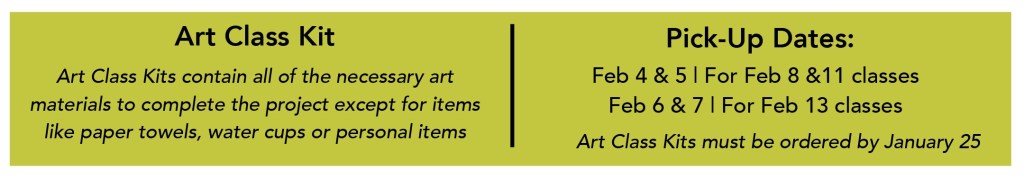 The Art Box includes the link to an art tutorial and all of the materials needed to create a unique seasonal artwork or sensory activity. Boxes are best suited for ages 3 and up and activities should be supervised by an adult.