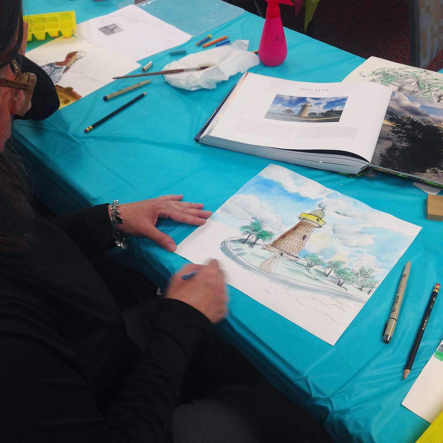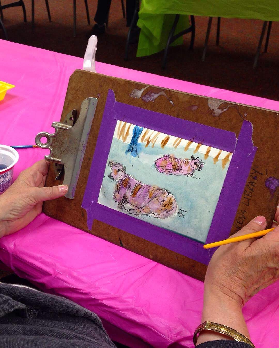Students gathered at Mt. Lebanon Public Library to experiment with loose drawing techniques and watercolor in a class meant to excite and promote creating for personal pleasure because ‘Why else make art if it’s not fun?’