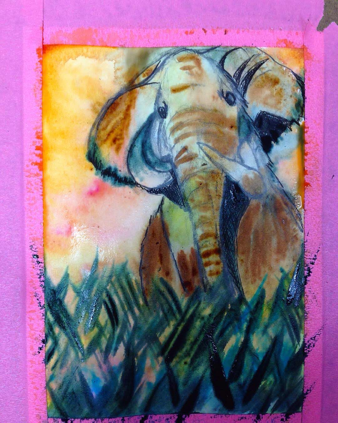 In watercolor, students tested solvency and fluid paths. Our tools were Dick Blick Liquid watercolor, brushes, spray bottles, water droppers, and oil pastels.