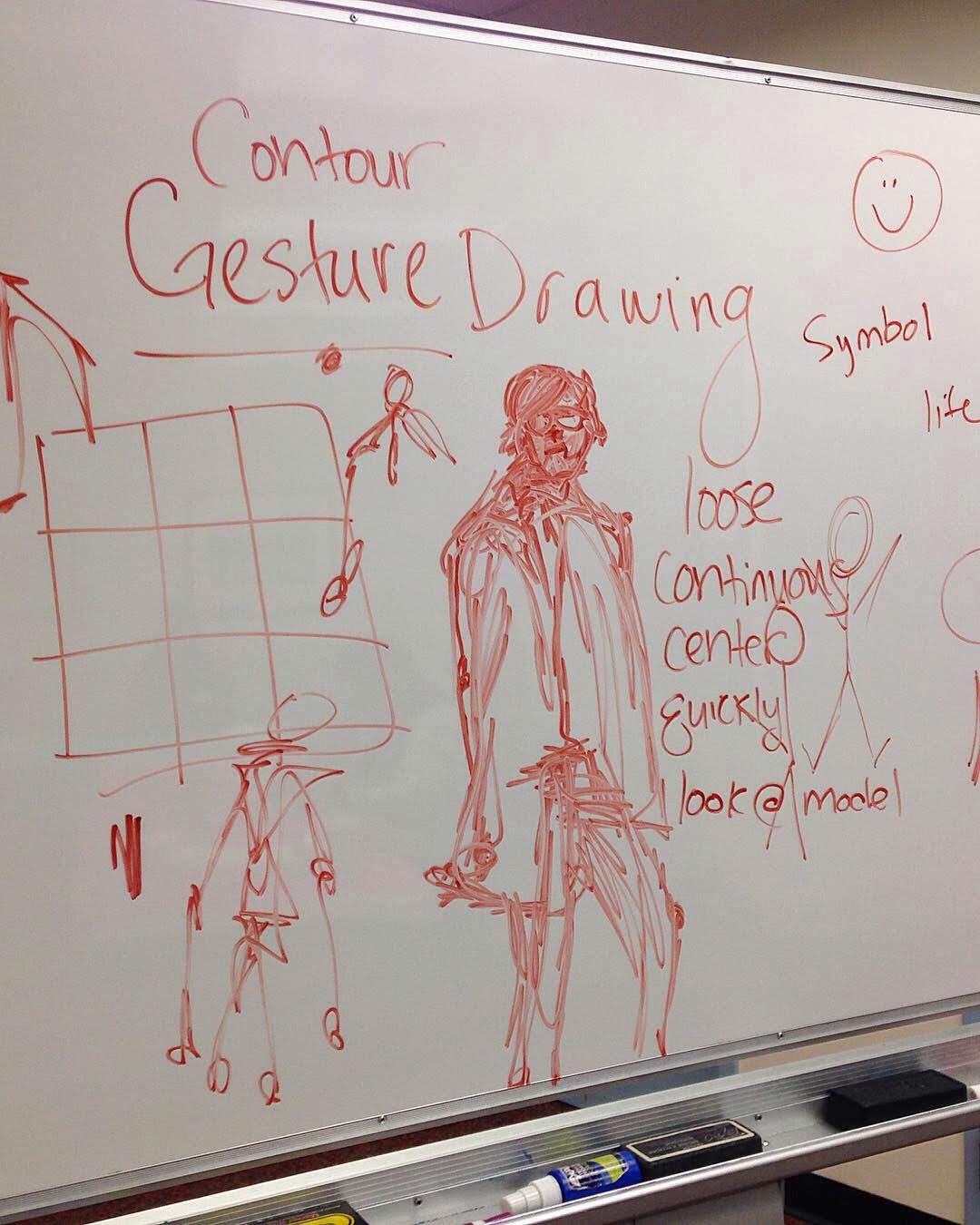 The first session focused on the human face and body and squished an entire undergraduate semester into two hours. We covered four drawing methods, human anatomy and proportion, and artistic expression in the form of style and color. Students were entirely engaged through out the process and were willing to be silly, dive into science and take artistic chances.